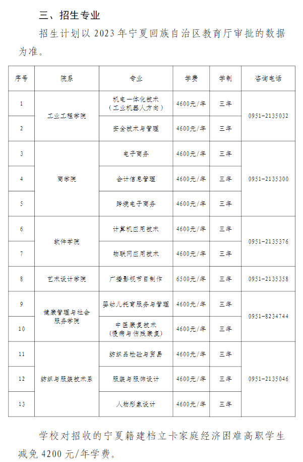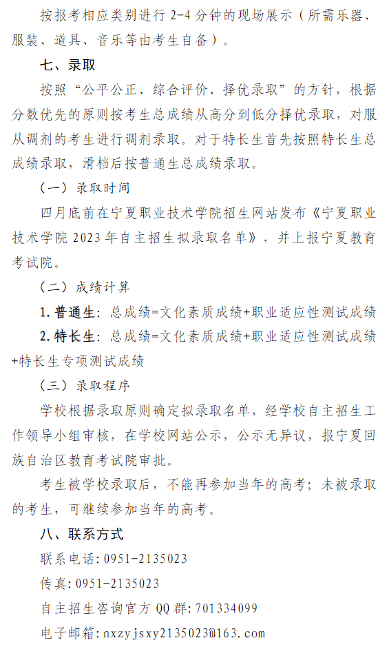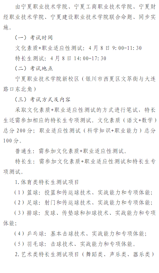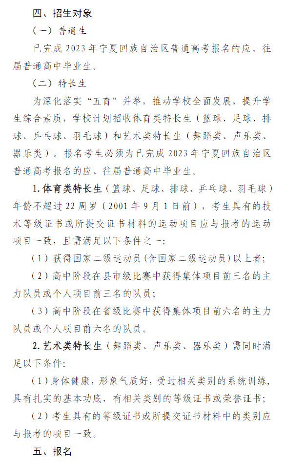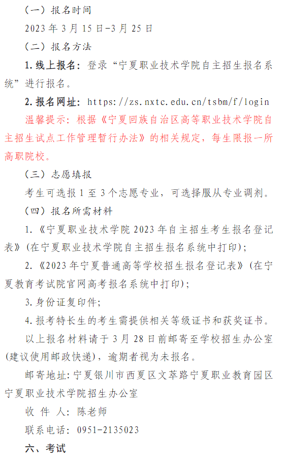 宁夏职业技术学院2023年自主招生简章